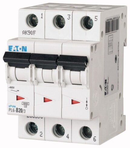 PL6-B20/3 line circuit breaker, 3 poles, 20A, characteristic B, 6kA