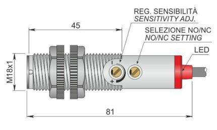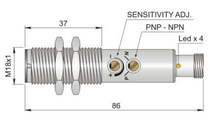 FT18-AP4 photoelectric sensor; 20-250AC; M18 plastic body; reflective; axial; 0…400mm; NO/NC; dimmer; 2m cable