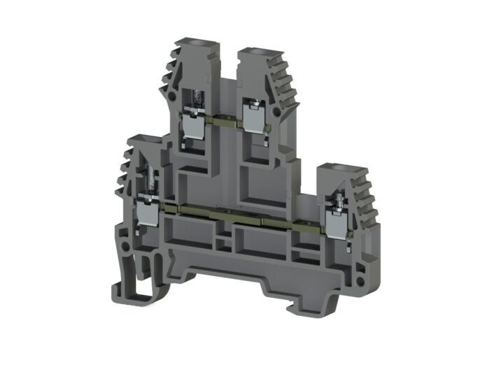 The dimensions of the PA66 material terminal block are 61,3 x 6 x 64mm (W*D*H).