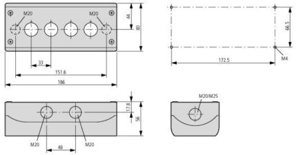 M22-FI3 knob box; 3 hole; grey; IP67; low profile