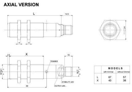 S5N-MA-2-C21-PP photo sensor; 10-30DC; M18 metal body; reflective; axial; 0…400mm; PNP; NO/NC; dimmer; 2m cable