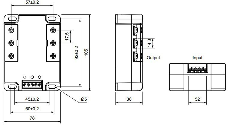 RSR62-60D80 semiconductor relay, 3-phase, input 4-32DC, output 24-660AC, 80A