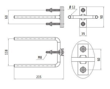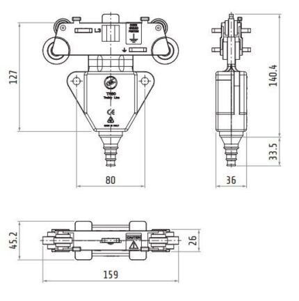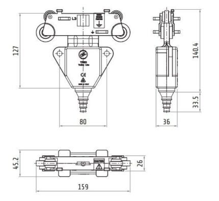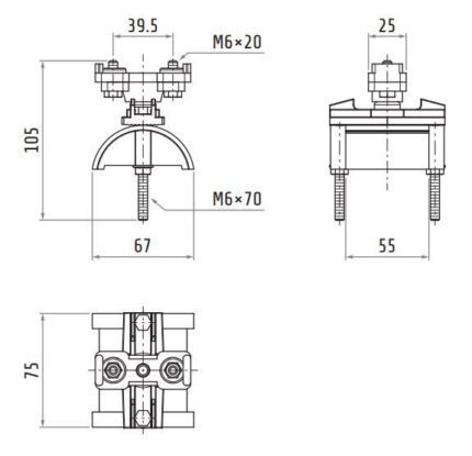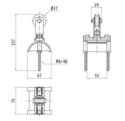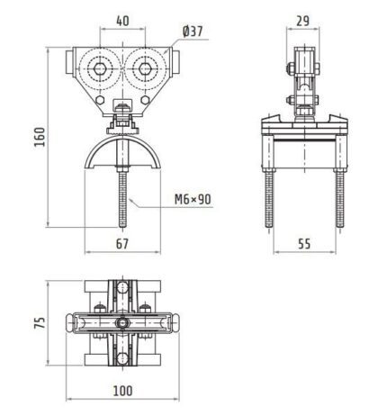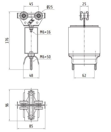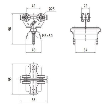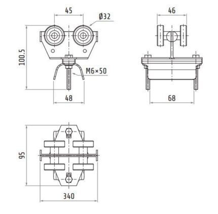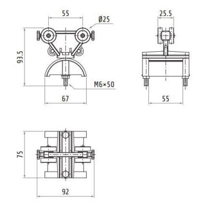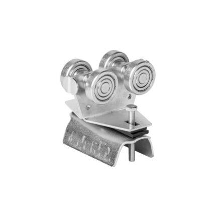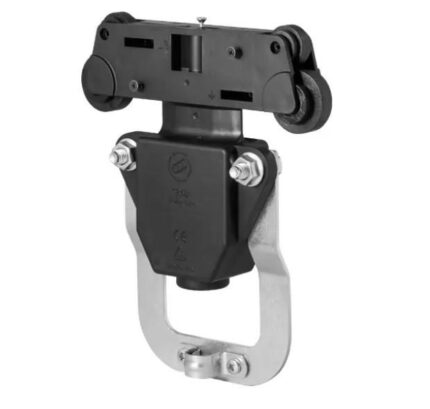 Metal suspension bracket; with four metal rollers; for 32mm busbar; for max 62mm ribbon cable.