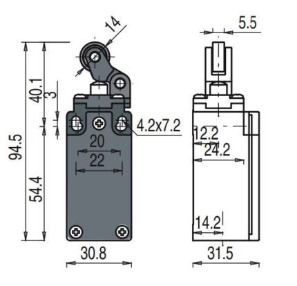 FM 515 road switch; 1NO+1NC; metal body; fast action; roller