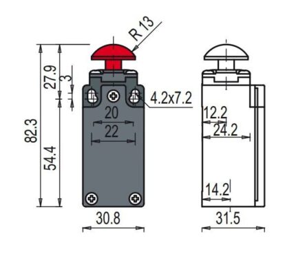 FM 514 road switch; 1NO+1NC; metal housing; fast action; push button