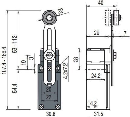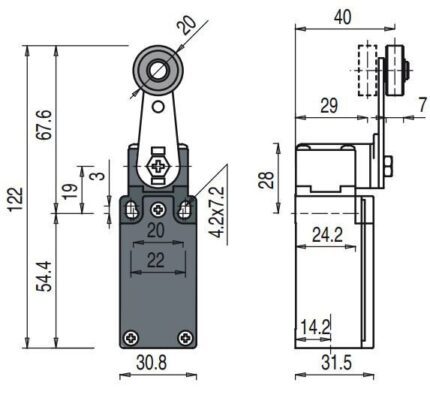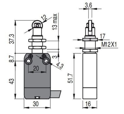 FM 507 road switch; 1NO+1NC; metal body; fast action; roller
