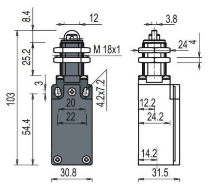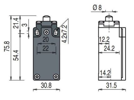 FM 538 road switch; 1NO+1NC; metal body; fast action; without mechanism