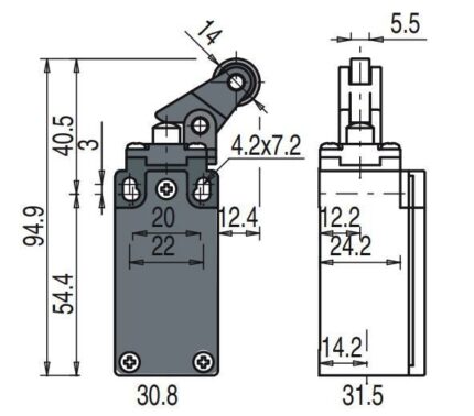 FM 555-T6 road switch; 1NO+1NC; metal body; fast action; roller and lever; -40˚…+80˚C