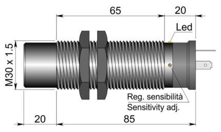 SI30-AE15 inductive sensor; 20-250AC; M30; “non-flush”; NO; 15mm; 2m cable