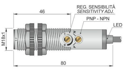 SIP40-CE20 inductive sensor; 10-55DC; PNP; NO/NC; 20mm; 2m cable