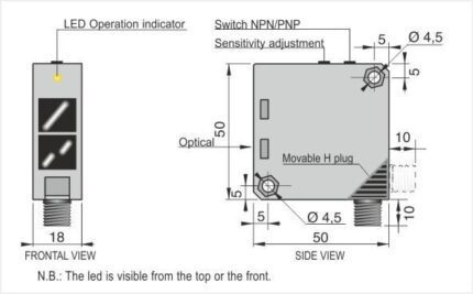 FT18SP-CP50 photo sensor; 10-30DC; M18 plastic housing; reflective; axial; 0…500mm; PNP/NPN; NO/NC; dimmer; 2m cable