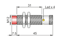 IS-12-G5-S2 induktiivandur; 10-30DC; "flush"; lühike korpus; 4mm; PNP; NO/NC; M12 pistik; IP67