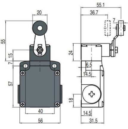 FD 551 teekonnalüliti; 1NO+1NC; metallkorpus; snap action; rullik ja hoob