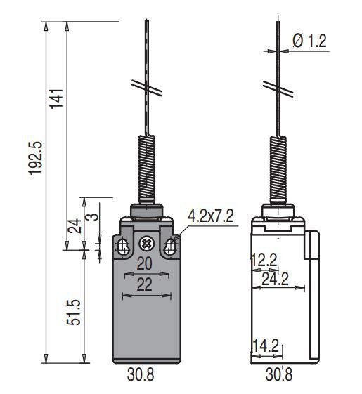 NF B110CV-DN2 teekonnalüliti; 1NO+1NC; plastkorpus; fast action; 2m juhtmega