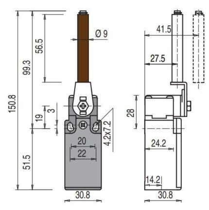 FF 4501-2DN teekonnalüliti; 1NO+1NC; plastkorpus; fast action; 2m juhtmega