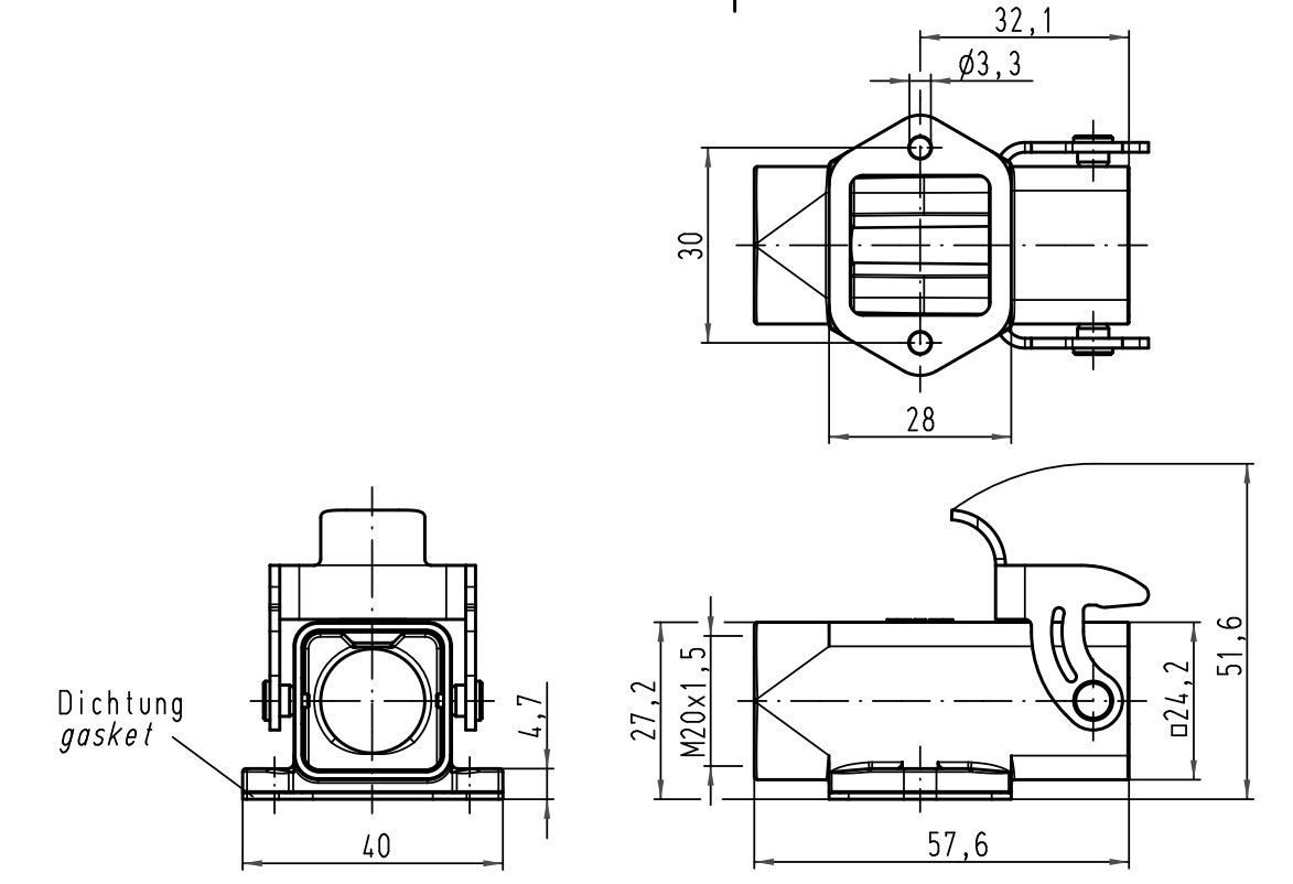 Быстроразъемный соединитель; 4PIN и/или 5PIN; гнездо; корпус; нижний вход; боковой вход; M20