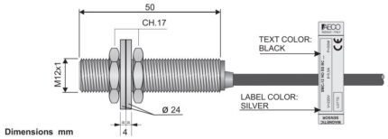 SMC-12 magnetandur; max 200V 0,5A; M12 roostevaba teras; NO; 20mm; 10m juhe