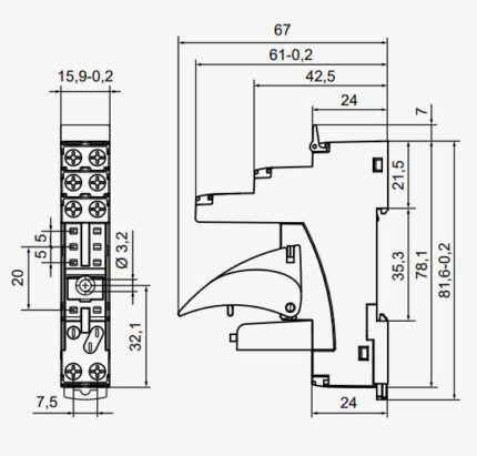 PI6W-1PS-12/24VDC relee alus; kruviklemmid; sisend 12-24DC; 1C/O; 6A (RM699; RSR30-le)