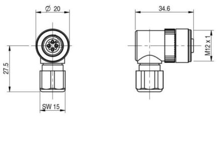 Pistik M12; 4pin; emane; kõver; kruviklemmid