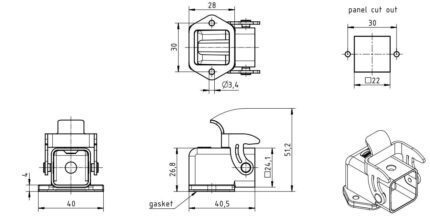 Kiirühenduspistik; 4PIN ja/või 5PIN; emane; korpus; põhja avaga; kõver